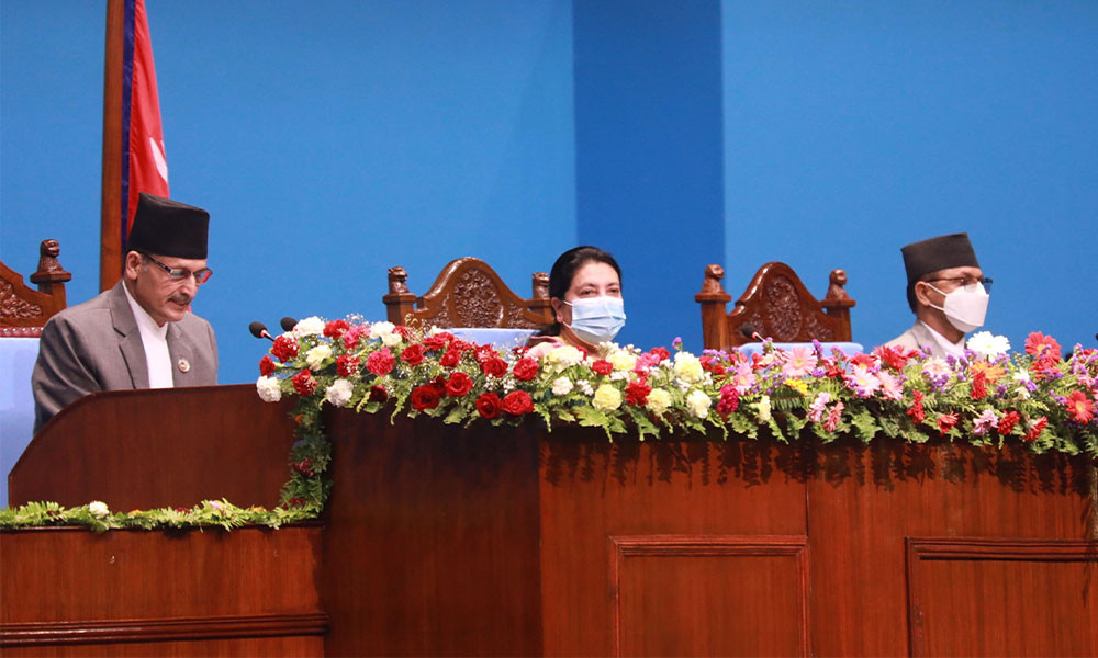 काठमाडौं । सरकारले आगामी आर्थिक वर्ष २०७९/८० को बजेटको नीति तथा कार्यक्रम सार्वजनिक गरेको छ । मंगलबार राष्ट्रपति विद्यादेवी भण्डारीले संघीय संसदको दुबै सदनलाई संयुक्त रुपमा सम्बोधन गर्दै बजेटको नीति तथा कार्यक्रम सार्वजनिक गरेकी हुन् । बजेटमार्फत सरकारले स्वदेशी उद्योग र उत्पादन विशेष प्राथमिकता दिँदै आयात प्रतिस्थापन गर्ने नीति लिएको छ ।