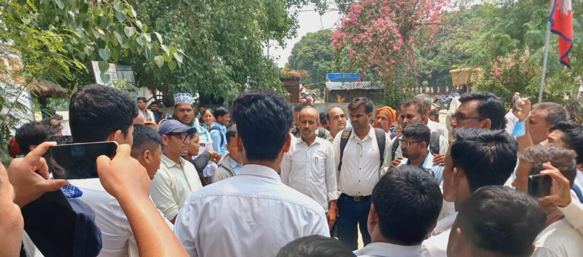 बाँके १४ जेष्ठ । बाँकेको नरैनापुर गाँउपालिकाका शिक्षा अधिकृत कृष्ण थारु र प्राविधिक कमल केसी माथि अभद्र व्यवहार गरी शिक्षा अधिकृत थारुलाई विनय प्रकाश दिक्षित नेतृत्वको समूहले शिक्षक भर्नामा घुस लिएको आरोप लगाउदै कोठामा एक्लै राखी पानीको बोतल समेत बहिरा निकाली ताल्चा लगाएका थिए ।