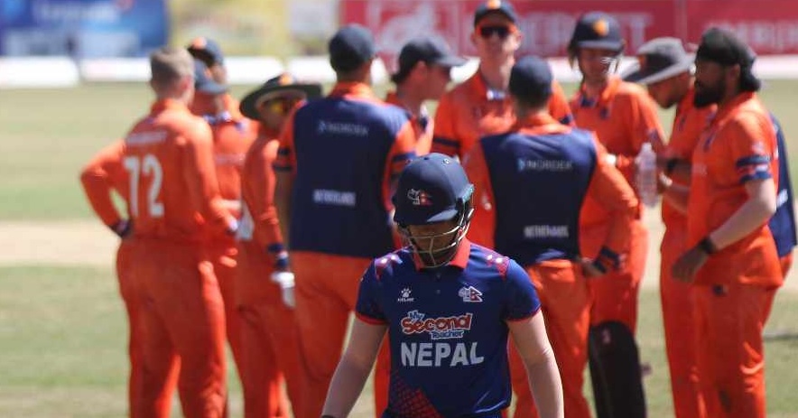 यस्तै विक्रमजित सिंहले २२, सेब्राण्ड एन्जेलब्रेचिटले १४ तथा बास डी लिडले अविजित ११ रन बनाए । बलिङतर्फ नेपालका लागि सोमपाल कामी, दीपेन्द्रसिंह ऐरी र अविनास बोहराले एक एक विकेट लिए ।