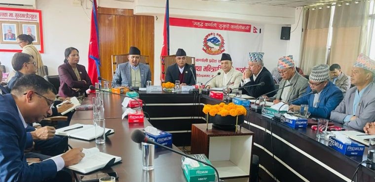 शुक्रबार कर्णालीको मुख्यमन्त्री तथा मन्त्रिपरिषद्को कार्यालयमा दुई प्रदेशका प्रतिनिधीहरूबीच भएको समन्वयात्मक बैठकले विभिन्न १९ बुँदे प्रतिबद्धता जारी गरेको हो । कर्णालीका मुख्यमन्त्री यामलाल कँडेल र लुम्बिनीका मुख्यमन्त्री चेतनारायण आचार्यले प्रतिबद्धता कार्यान्वयन गर्ने बताएका छन् ।