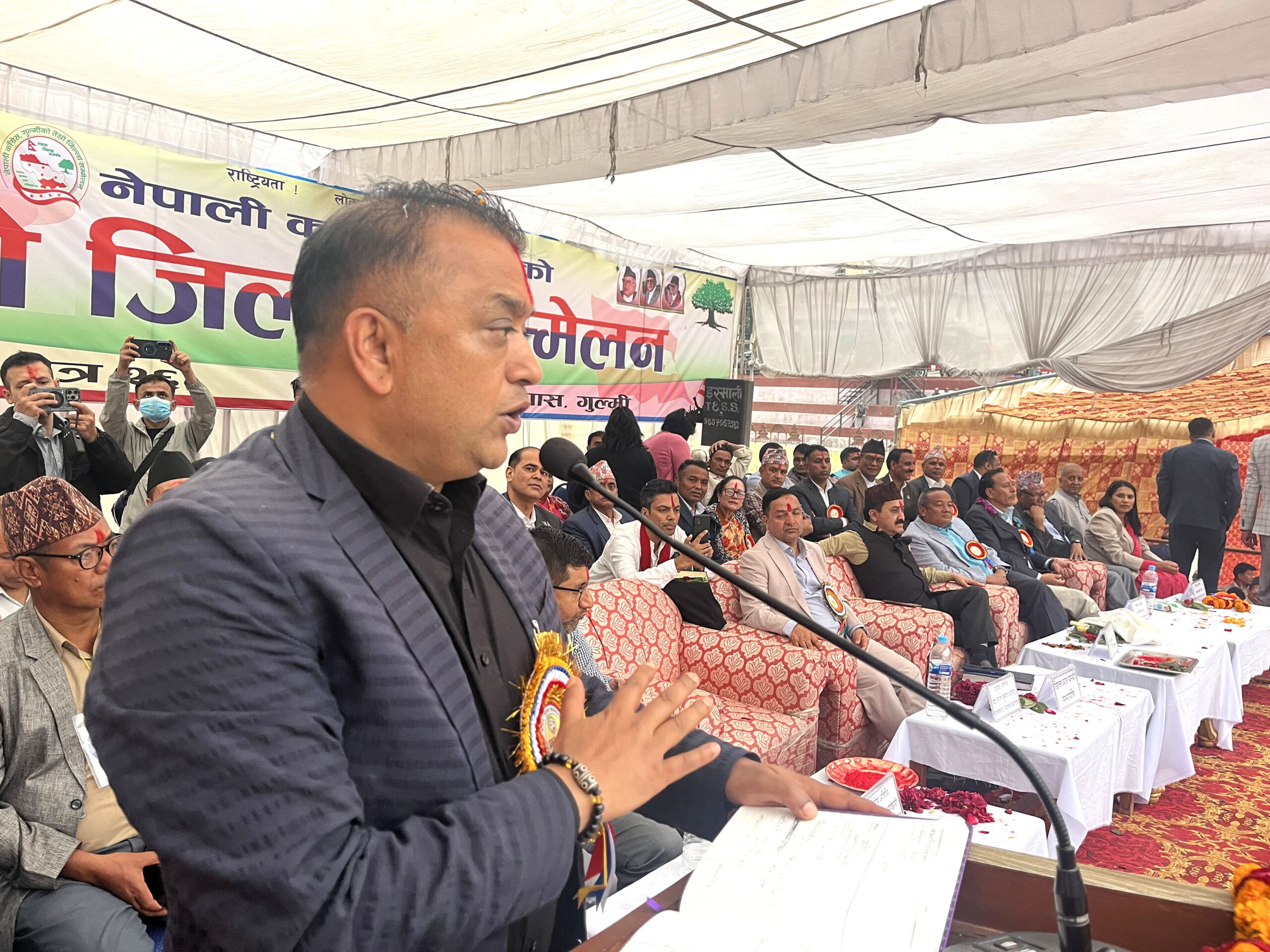 नेपाली कांग्रेस गुल्मीद्वारा आज सदरमुकाम तम्घासमा आयोजित तेस्रो जिल्ला सम्मेलनमा महामन्त्री थापाले गलत काम गर्ने जो कोही भए पनि त्यसले सजाय पाउन सकेमा मात्र नागरिकमा भरोसा सिर्जना हुने बताउनुभयो । उहाँले प्रधानमन्त्री तथा मन्त्रीहरुले खुरुखुरु जनताको हितका लागि काम गर्नमा लाग्नुपर्ने उल्लेख गर्दै राम्रो कामको प्रचार गर्न आफूहरु तयार रहेको बताउनुभयो ।