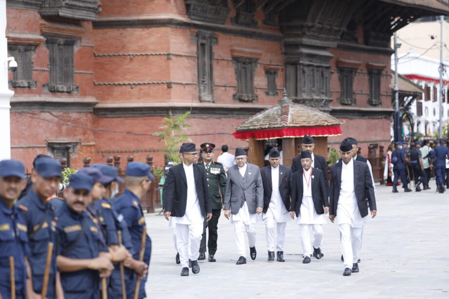 काठमाडौँको विश्व सम्पदा सूचीमा सूचीकृत वसन्तपुरस्थित हनुमान ढोका दरबार क्षेत्रमा ऐतिहासिक इन्द्रजात्रा पर्वको अवलोकन गर्नुहुँदै राष्ट्रपति रामचन्द्र पौडेल |