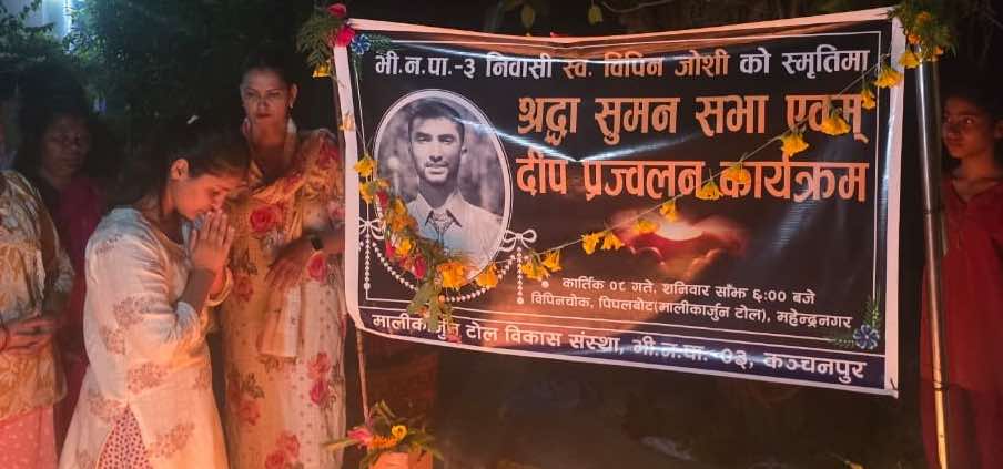 महेन्द्रनगर। इजरायल–हमास युद्धमा हमासको अपहरणमा परी ज्यान गुमाएका विपिन जोशीको सम्झनामा ‘विपिन चोक’ नामकरण गरिएको छ । आज साँझ एक कार्यक्रमका बीच यहाँको भीमदत्त नगरपालिका–३ स्थित मालिकार्जुन टोलमा ‘विपिन चोक’ नामाकरण गरिएको हो ।