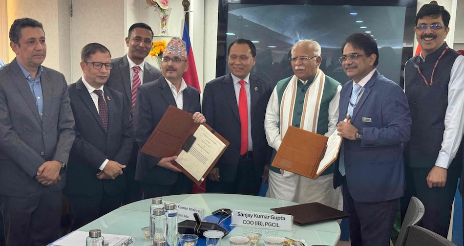 Nepal Electricity Authority (NEA) Deputy Executive Director Subhash Kumar Mishra and Chief Operating Officer Sanjay Kumar Gupta at Power Grid Corporation of India Limited signed the agreement on behalf of their respective sides, in the presence of the two ministers.